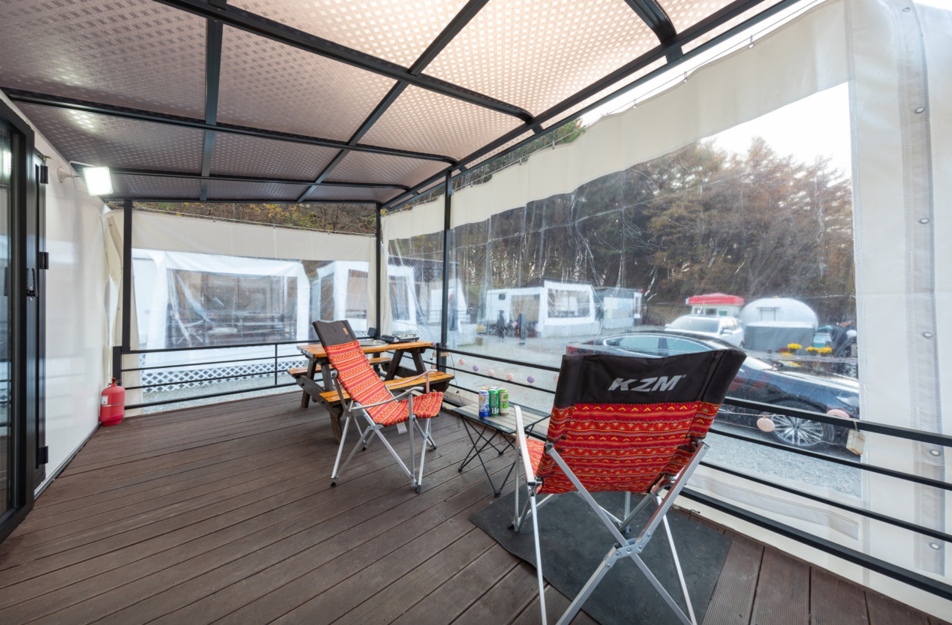Buzz Glamping 露营区位于江原道春川市,以其轻松悠闲的氛围而闻名。如果想在营地里远离夜晚的喧嚣,非常适合家人、朋友或者情侣来体验露营的乐趣。