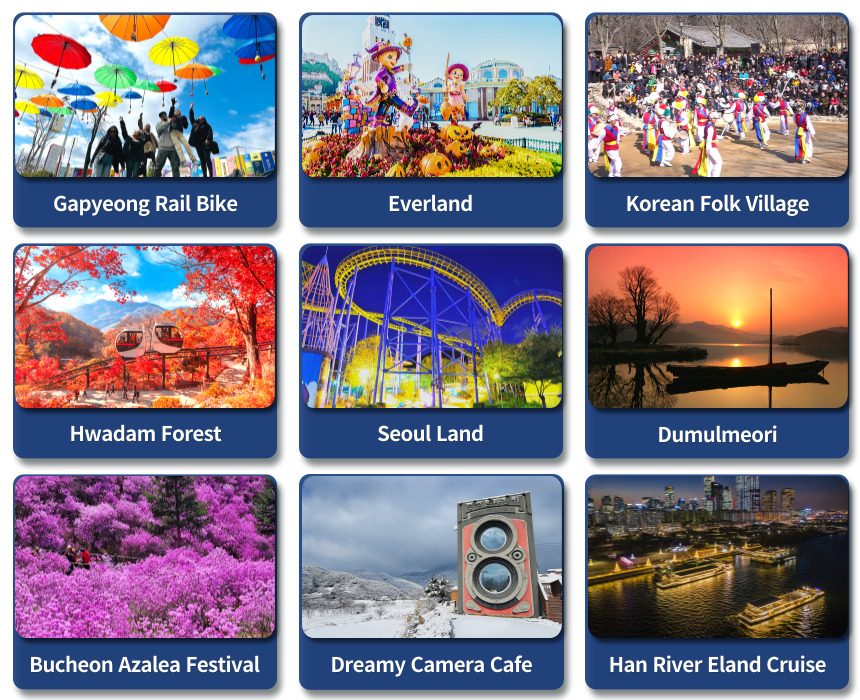 • 首尔周边有许多旅游景点值得探索。找到你自己的最爱!
